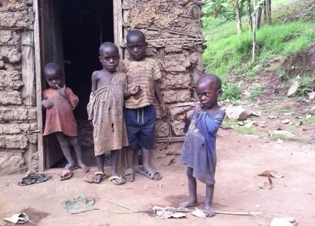 Batwa children in 2014. The Batwa face landlessness, extreme poverty, hunger, malnutrition, lack of parental care, alcoholism, lack of healthcare, and total cultural breakdown due to their forced removal from the forest. They have not received any of the "10% given to locals" from tourism revenue, and most can not read or write to fill out the permits necessary to access to the forest, even if they wanted to.